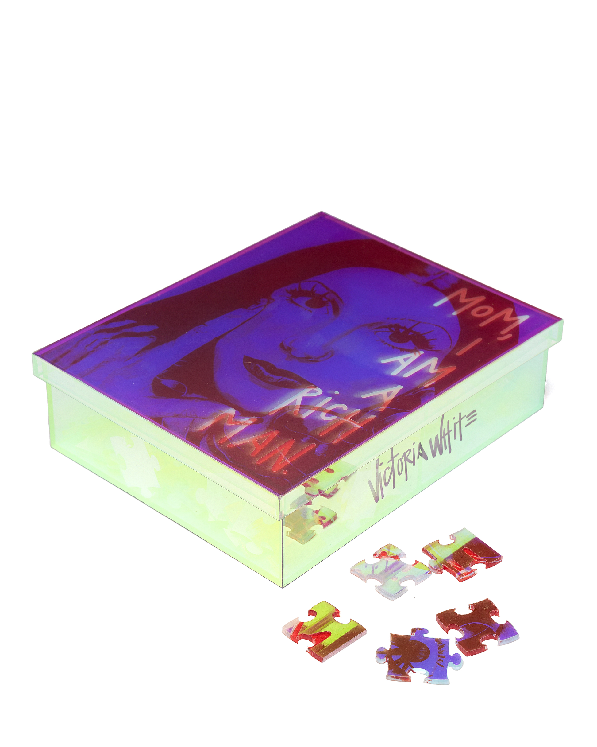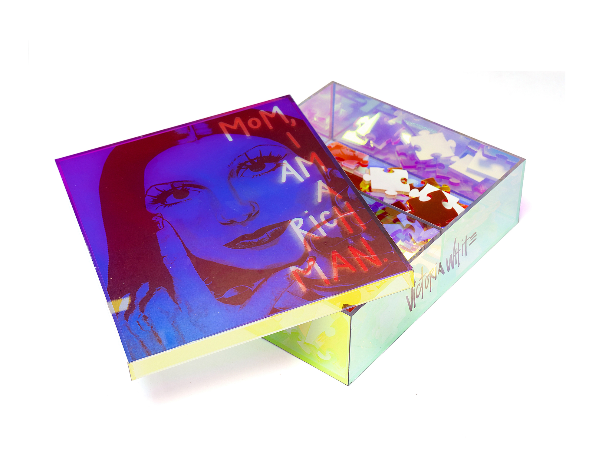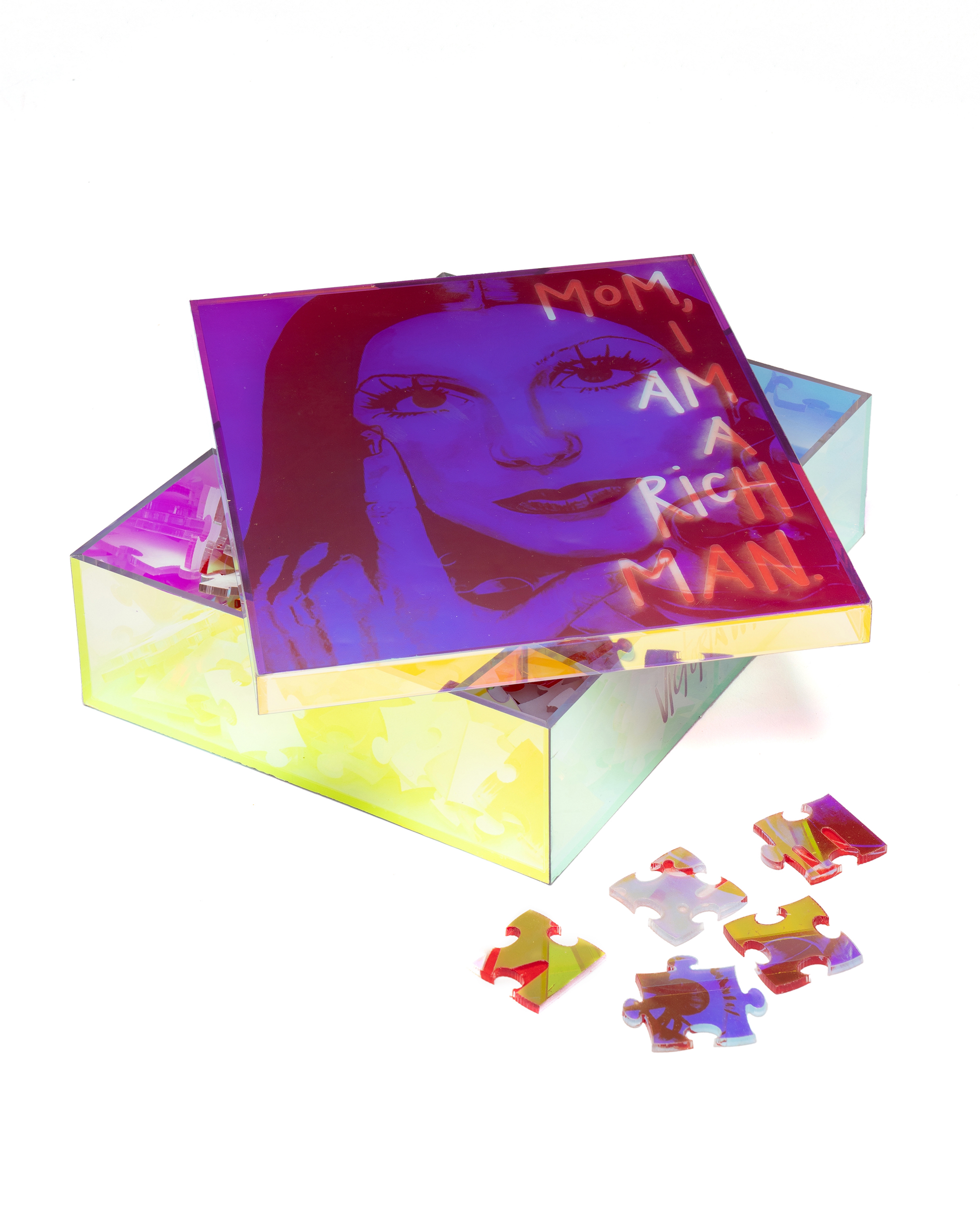 iridescent acrylic box with 80 piece iridescent acrylic puzzle