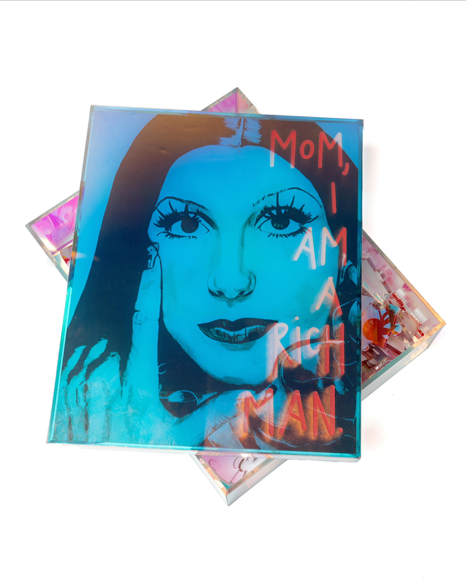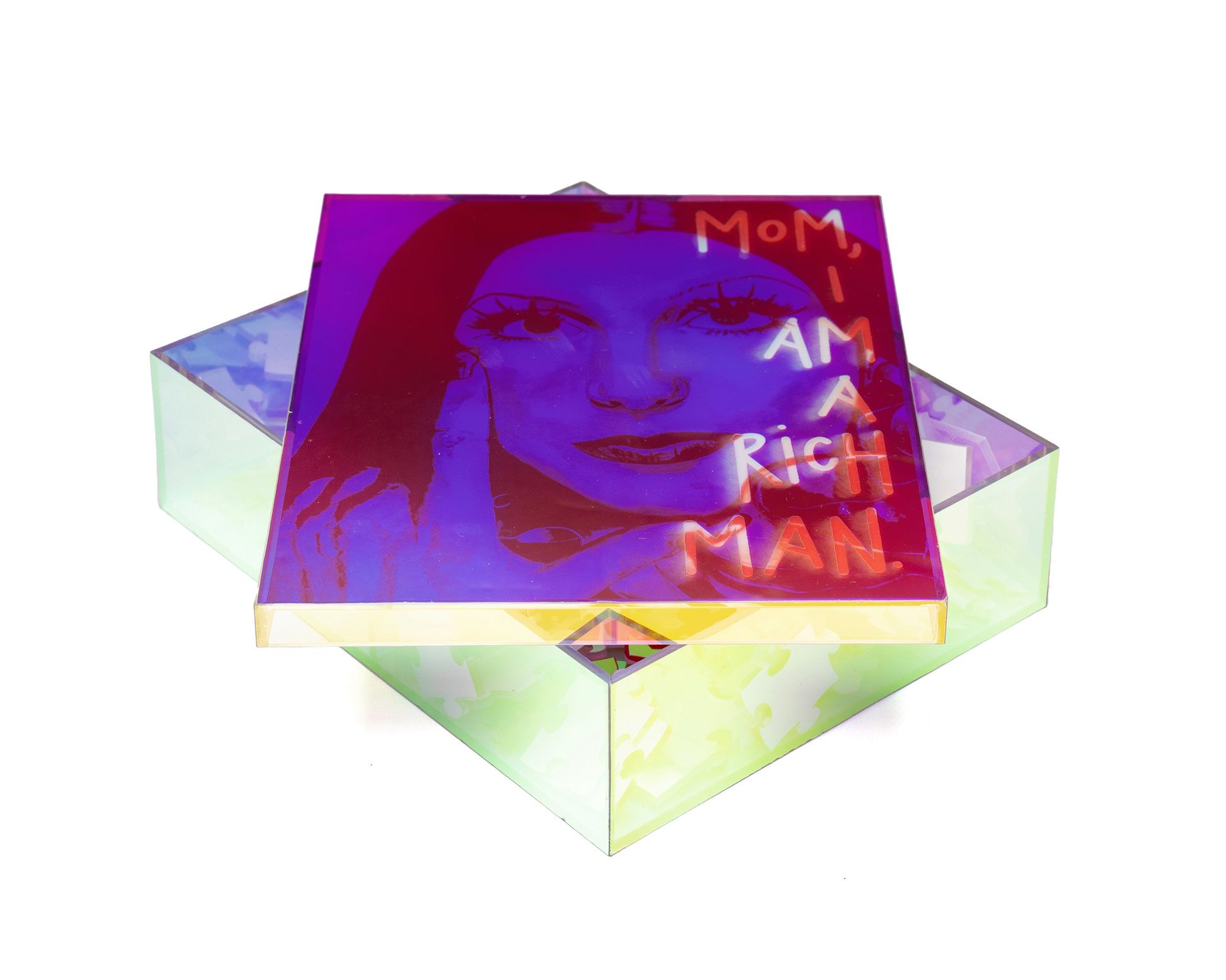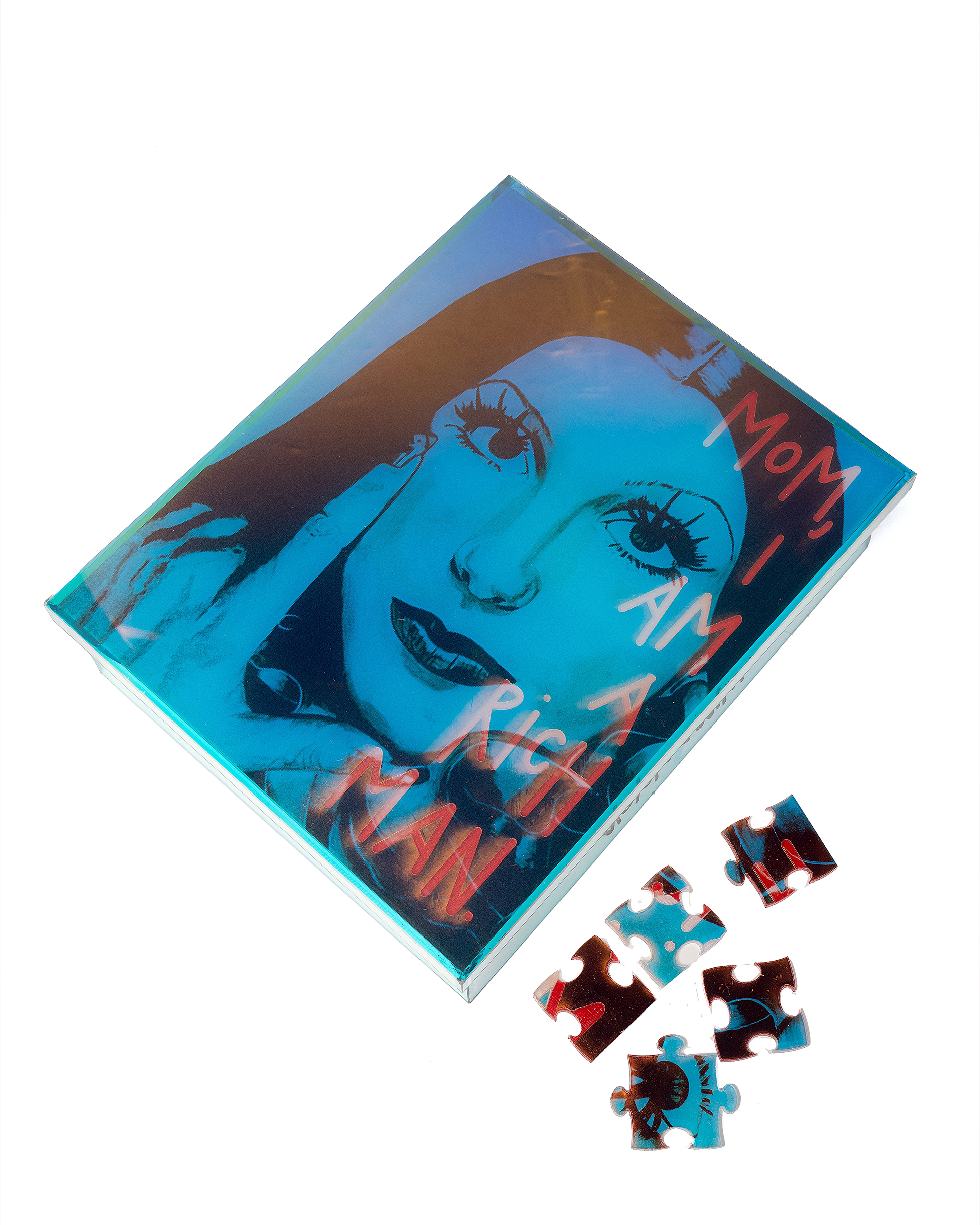 iridescent acrylic box with 80 piece iridescent acrylic puzzle