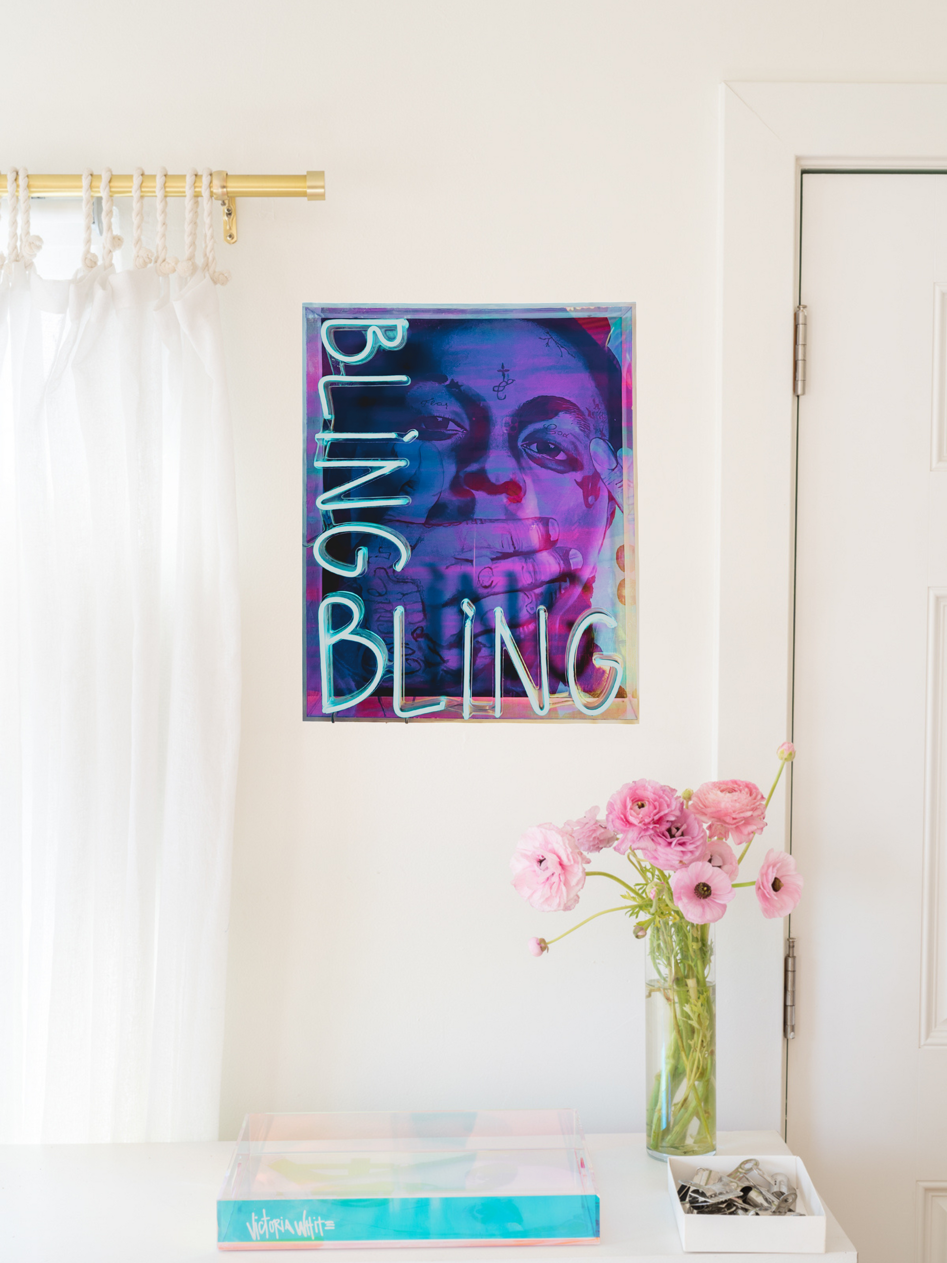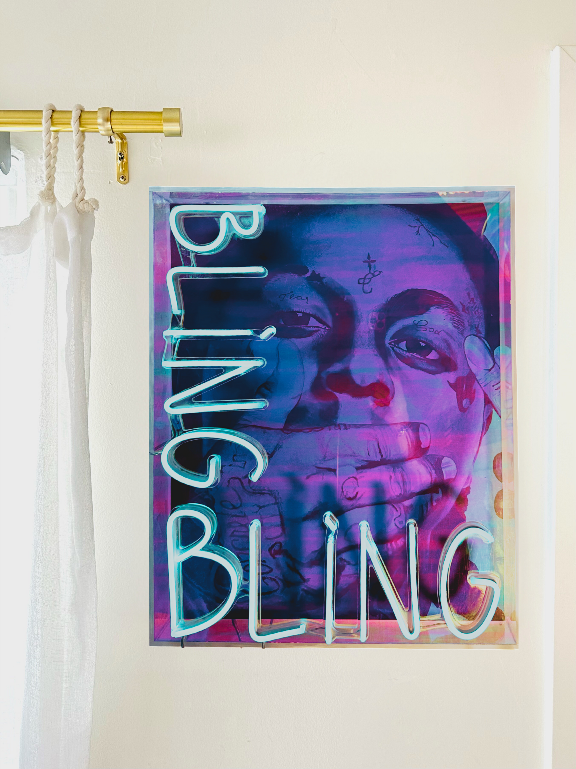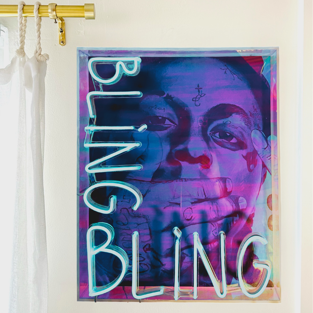 limited edition print, acrylic shadowbox frame, neon lights